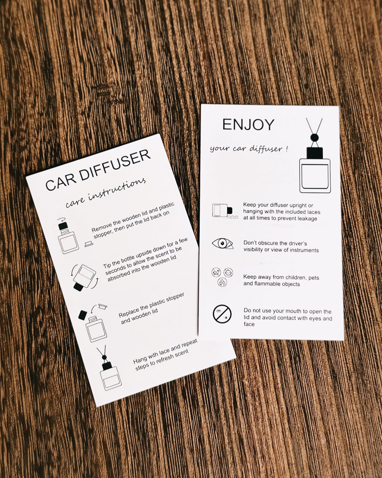 Bring calm to your commute, one drop at a time. These compact diffusers combine functionality with sleek style design. The diffusers hang effortlessly by durable, adjustable strings. Designed with leak proof stoppers, allowing you to control the aroma diffusing through the porous wooden cap. Eco-friendly and refillable!